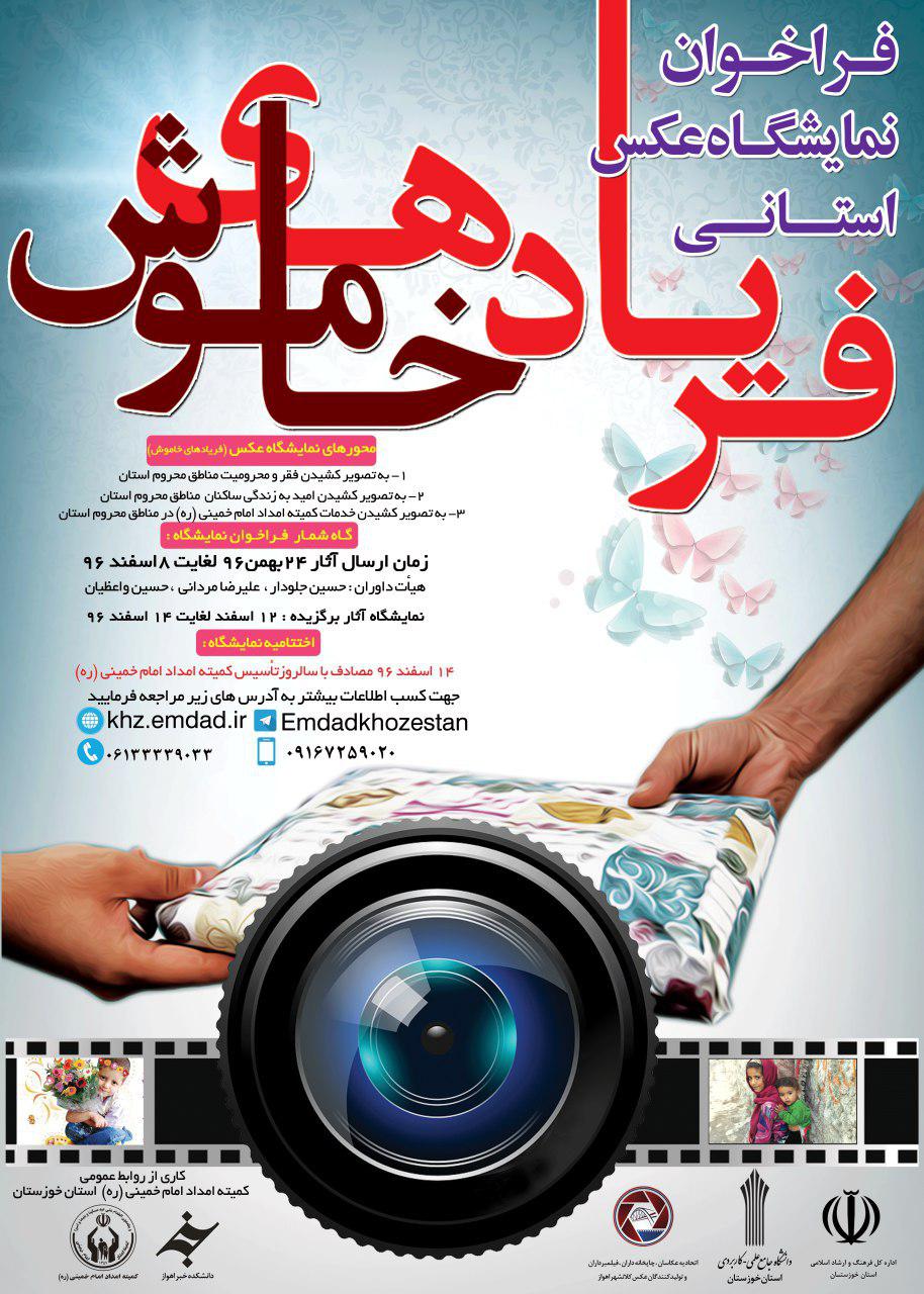 با توجه به اهمیت و نقش ابزار هنر در راستای توسعه فرهنگ و احسان و نیکوکاری و به جهت تحریک افکار و رفتار و احساس آحاد مردم نسبت به مسئولیت اجتماعی در قبال مستضعفین جامعه ، این اداره در نظر دارد فراخوان عکس استانی با همکاری دانشکده خبر اهواز ،اداره کل فرهنگ و ارشاد اسلامی استان خوزستان و موسسه فرهنگی هنری دهکده هنری سیمرغ با هدف به تصویر کشیدن فقر و محرومیت مناطق استان ، به تصویر کشیدن امید به زندگی در مناطق محروم وهمچنین به تصویر کشیدن خدمات امداد امام خمینی (ره) در مناطق محروم ازمنظر هنرمندان رشته عکاسی در قالب برپایی نمایشگاه آثار منتخب و طی یک مراسم اختتامیه در روز 14 اسفند همزمان با گرامیداشت سالروز تاسیس کمیته امداد به دستور امام خمینی (ره) همراه خواهد بود .