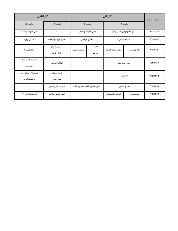 فهرست زمانبندی برگزاری آزمون دروس مشمول آزمون متمرکز نیمسال اول سال تحصیلی ۱۴۰۰-۱۳۹۹ دانشگاه جامع علمی کاربردی اعلام شد